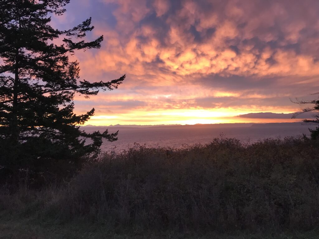Now I watch day break from my upstairs office. Orange-leaved trees emerge from darkness, first the witch hazel, then the crepe myrtle. The time change has given me back this pleasure. My eyes pop open at 5:30 instead of 6:30.