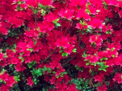 The azaleas are out and the dogwood still in bloom. The clematis winds its way around the lamppost. Tulips nod valiantly by the door. Forget-me-nots spread a blue cloud in the garden.