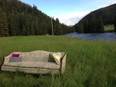 Later, in a tent under the vast northern sky, we ate and drank and danced until the band stopped playing. The bride had hauled her couch down to the meadow for photographs, and the sight of that familiar piece (I’ve seen it in Indianapolis and Missoula and now here, in Big Sky) and the bride’s father’s toast likening marriage to a river brought all the circle-of-life feelings to an intense and memorable pitch.
