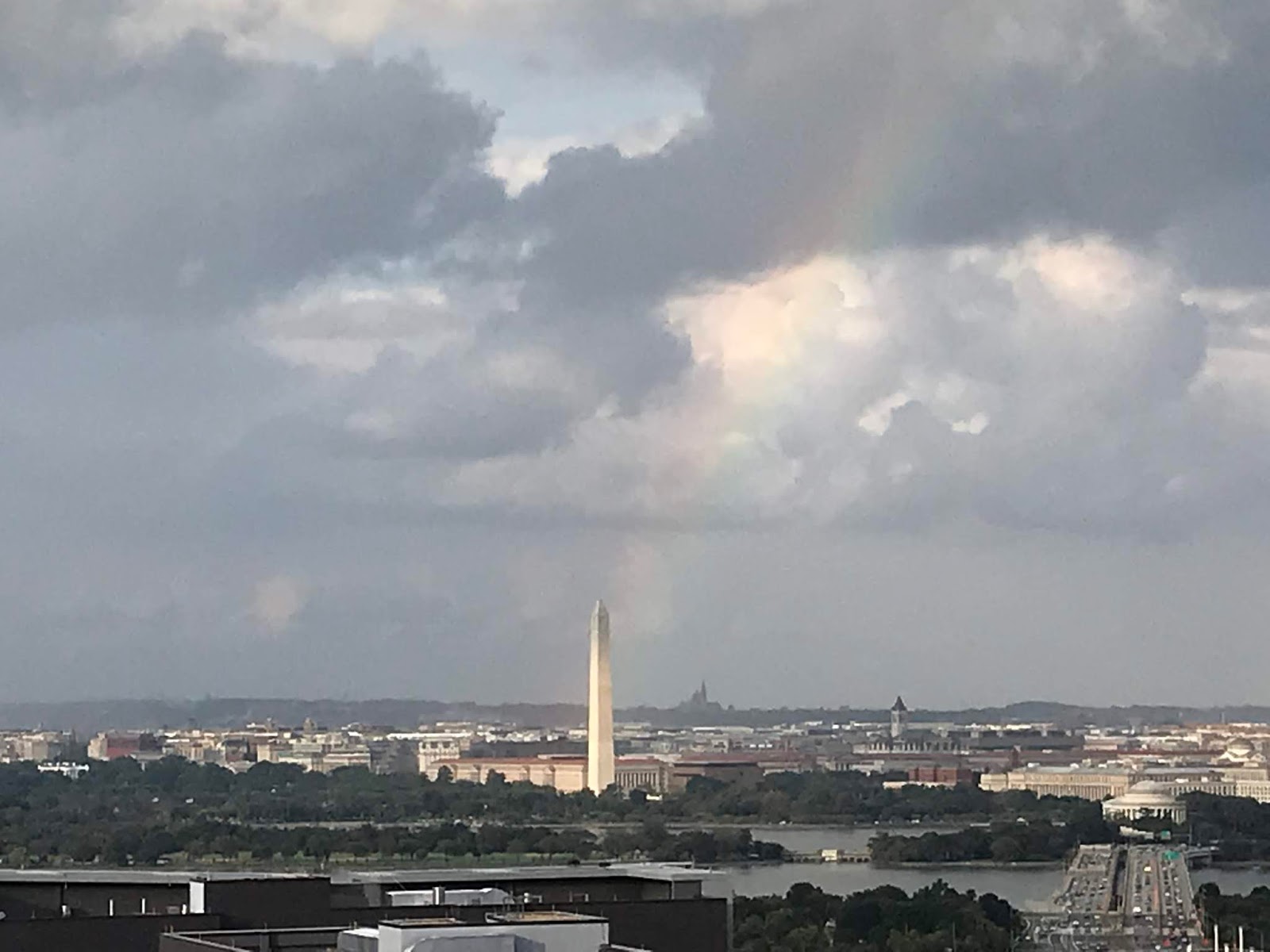 I’ve lived here for decades and never before seen a rainbow over the Washington Monument. It looks like there should be a pot of gold buried somewhere at its base — but I didn’t find it when we visited later that night.