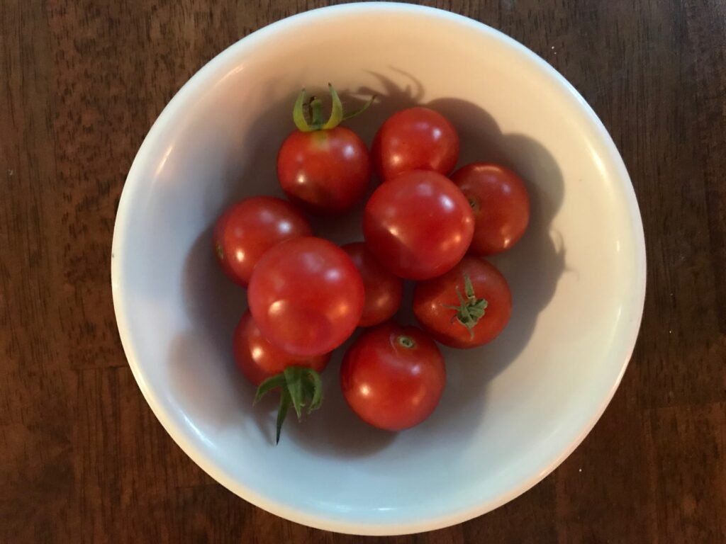 What fun to stroll back to the car with my precious cargo. Not just my phone and keys (the essentials), but also with those three tomatoes.