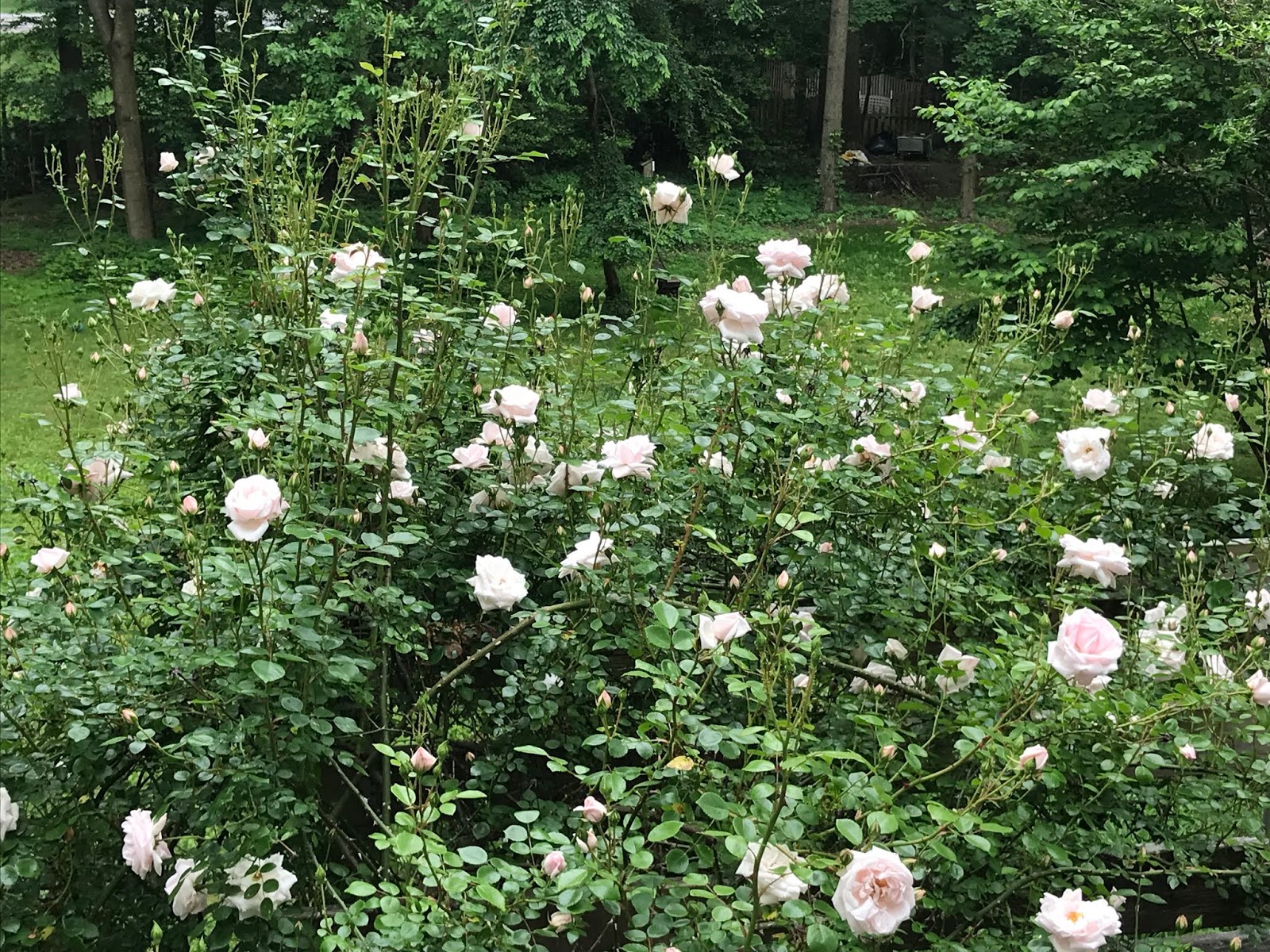 The ground is hard and cracked, given two weeks without moisture, which made it easy for me to amble out there in my (sturdily-soled) slippers. Weather folks say we need the rain, but I say we need the dryness. The yard is finally not a lake anymore.