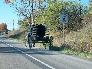 On Saturday we toured Holmes County, Ohio, home to the world’s largest Amish population. We passed buggy after buggy, and after a while I noticed there were different models. Some were like sedans; others resembled little trucks. All were pulled by beautifully sleek black horses.