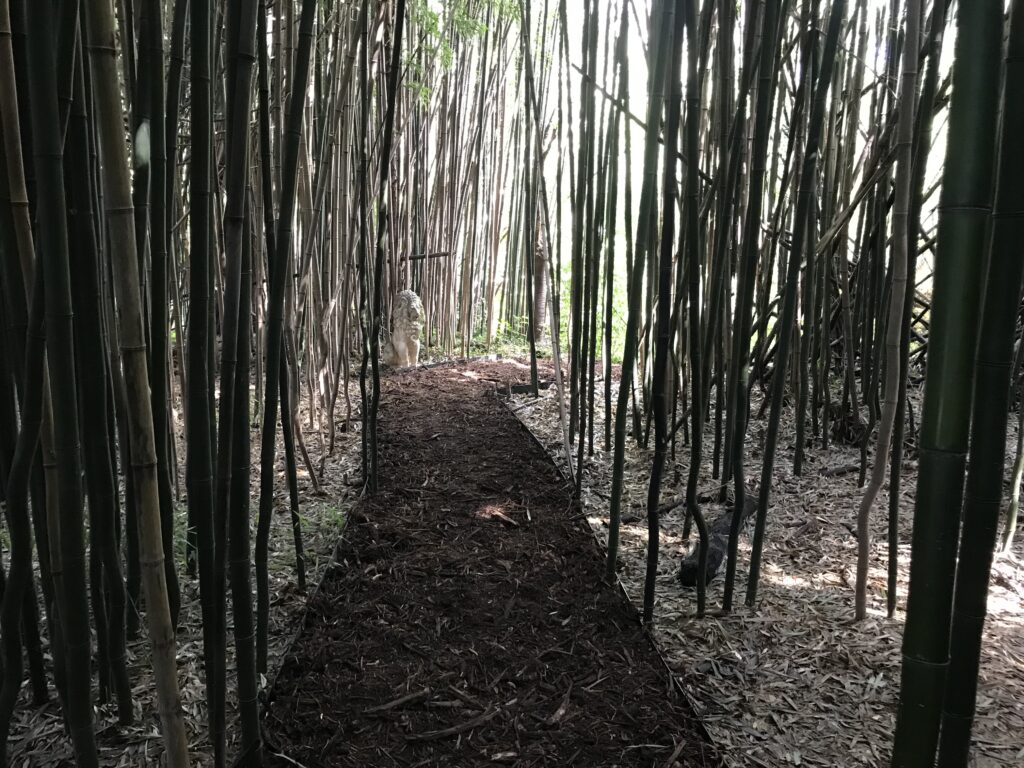 Who knew bamboo trees could grow so close together? Who knew they could shut out the day? Had a path not been plotted between the plants, the forest would have been impenetrable.