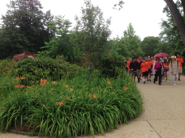 I saw a bomb-sniffing dog and a troop of high school students on a field trip. I saw a bounty of day lilies in front of the grotto. A Chinese lady motioned for my help, pointed to the Capitol and asked if it was the Library of Congress. That was one question I could answer. “Look for the fountain,” I said, pointing behind the scaffolded dome.