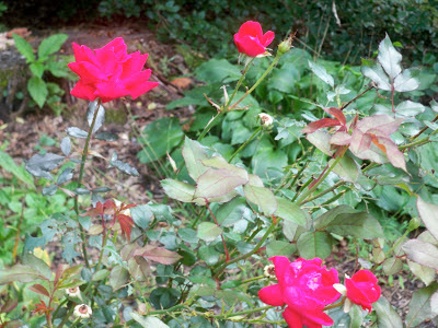 Frost has nipped the begonias, colored the maples, brought a dignified end to the tomato and basil plants. But it has not yet conquered the knockout roses in our front yard.