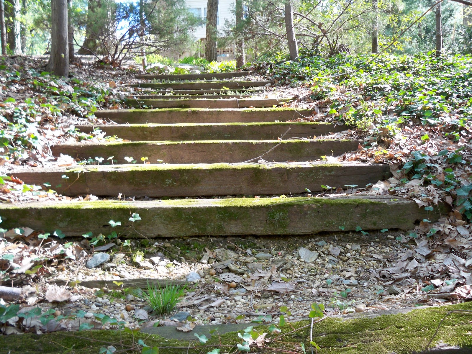 On the return I noticed an angled tree swathed in eye-popping green moss, and a miniature waterfall draining from the swampy lowland into the even-lower stream — subtle snapshots I hadn’t seen going the other way.