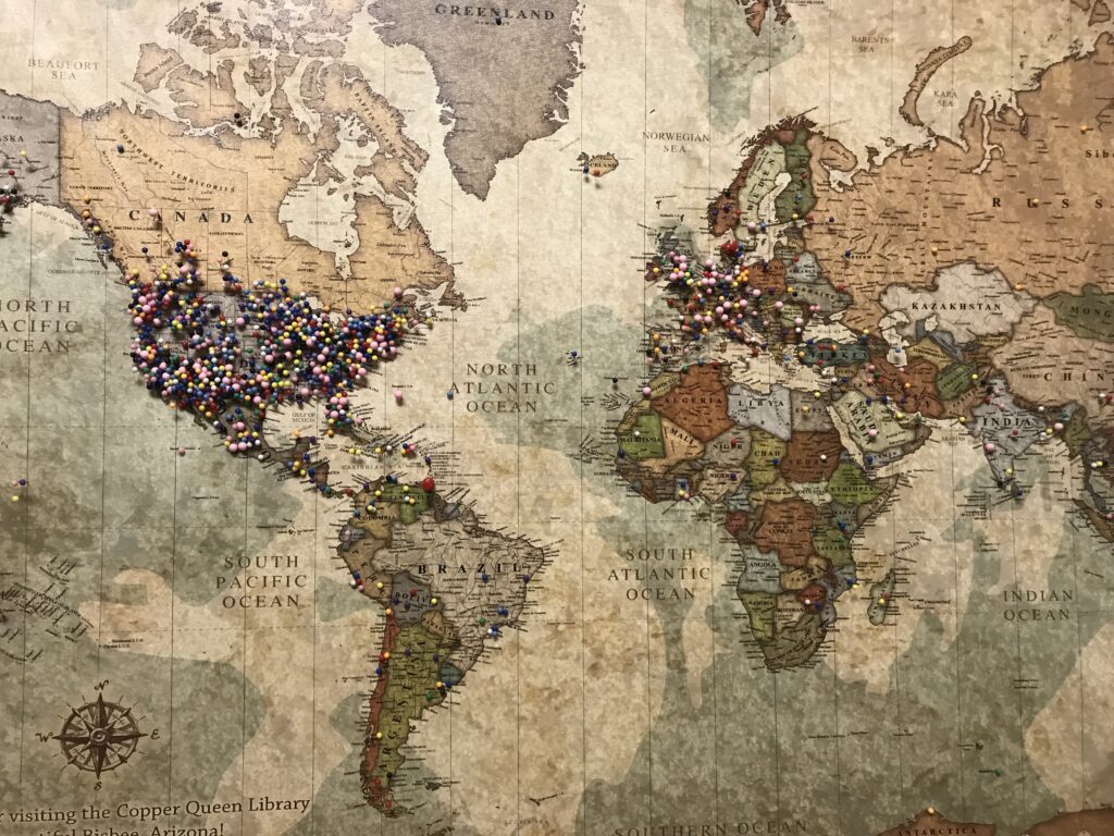 Visitors are encouraged to sign a guestbook and mark their hometown locations with a pin on the map. We did the former, but there was no room for a pin on the eastern coast of the U.S. It was the most high-density region of all. At least from what I’ve seen, though, it has no libraries like the Copper Queen.