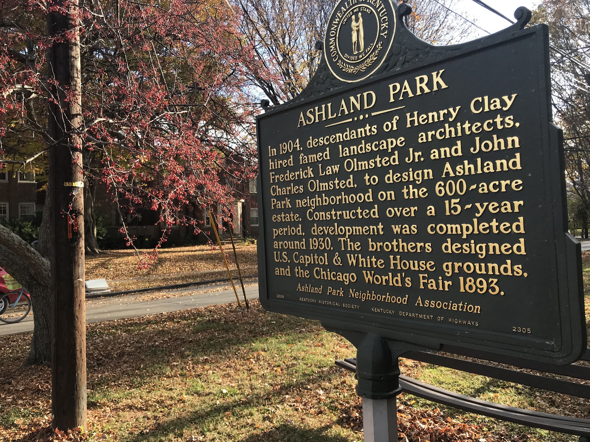 He and his brother, as the marker explains, had a hand in designing Transylvania Park, where the lovely Lexington Library once reigned; Ashland Park, where I spotted this sign; and Woodland Park, one of my favorite haunts.