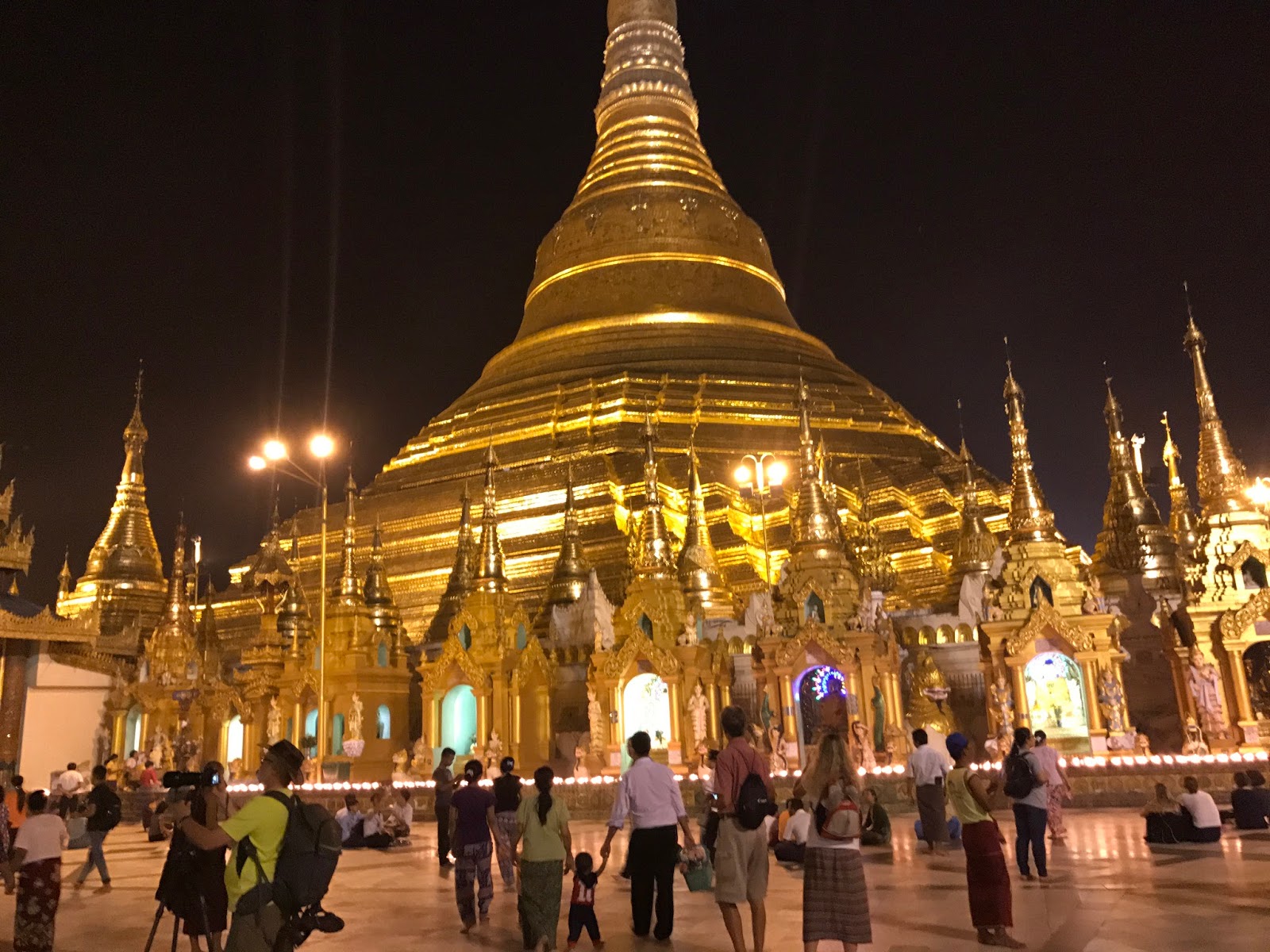 They were the natural part of that country’s beauty. Here’s another part: the Golden Pagoda seen on a balmy night last November.