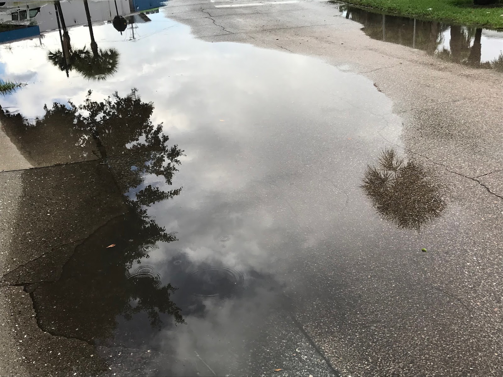 The last few afternoons have featured big rains with dark clouds building, sheets of water falling and palm trees swaying. These storms have left large puddles in their wake, bodies of water like small ponds, making you cross the street when you’re walking to the market to pick up the salad dressing you forgot to buy an hour earlier.