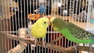In 2016, when her original partner, Sid, was ailing, the canary-yellow Dominique literally propped up the sick bird with her own body. And she bravely bore the antics of the young whippersnapper (Alfie) we brought in to take his place. Because Dominique really seemed to mourn Sid when he was gone. I was afraid she would pine away without another parakeet by her side.