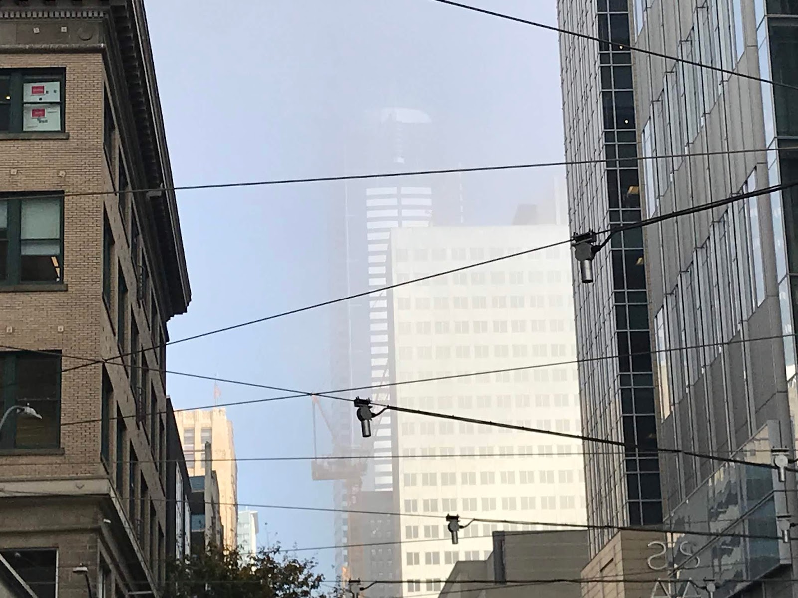 Yesterday morning the fog in the air matched the fog in my brain. It flitted between my ears like so much cotton batting. I walked to the light rail line hoping both fogs would clear, the internal and the external.