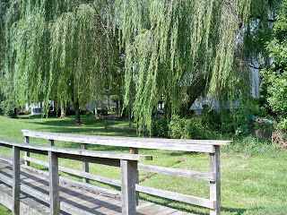Passing through the woods last evening on a quick walk before dinner, I crossed a bridge that Tom built. It’s a very humble plank bridge (not the one above) that took him no time to throw together.