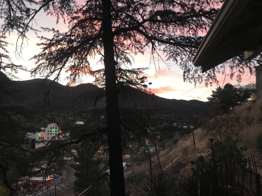 I’m writing from a bungalow on a hilltop in Bisbee, Arizona. The town is spread out below us and fir trees frame the view.