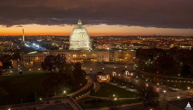 I’d dreaded the project, worried about how it would spoil the view of the Capitol. But what a picture it makes at night. The dome glows within its cage, giving the scaffolding an airy, ethereal feel and amplifying the impression the dome always gives, which is that it floats above the rest of the city.