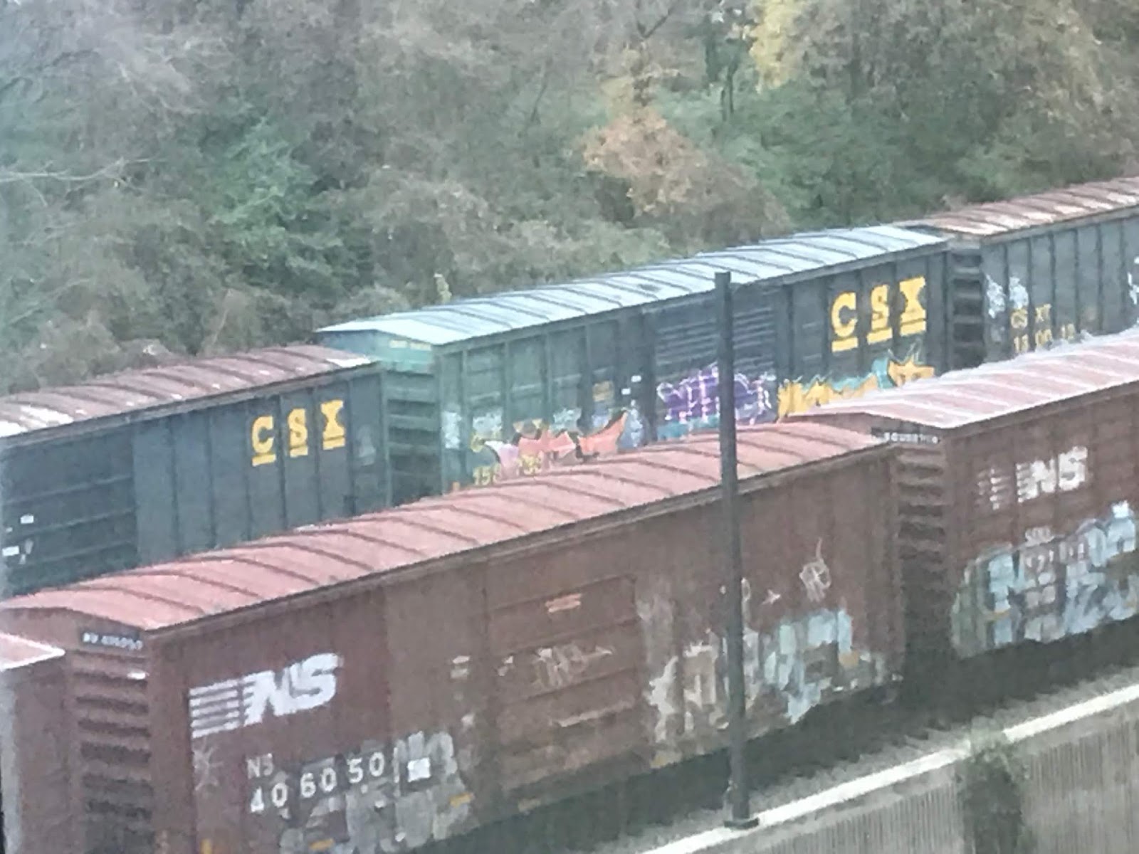 Whether it’s the Virginia Railway Express commuter line (one just zoomed by!), the quicksilver flash of an Amtrak engine heading up the Northeast Corridor, or one of the lumbering freights that seem to go on forever, I find this new pastime more than a little distracting.
