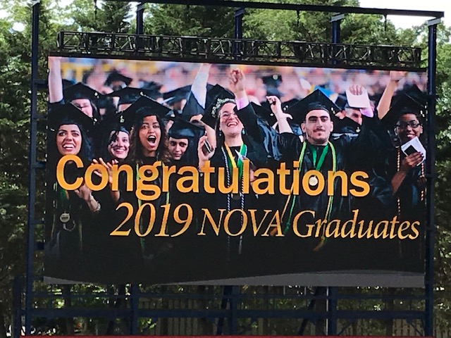The Johns Hopkins ceremony was held at Meyerhoff Hall in downtown Baltimore, home of the Baltimore Symphony Orchestra. The NOVA graduation was held at the outdoor concert venue Jiffy Lube Live, where you can hear Dead & Company or Wiz Khalifa.