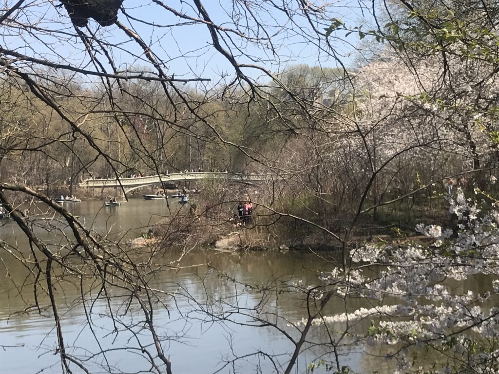 (The Bow Bridge in Central Park, seen through bare branches. We’re further along than NYC, of course.)
