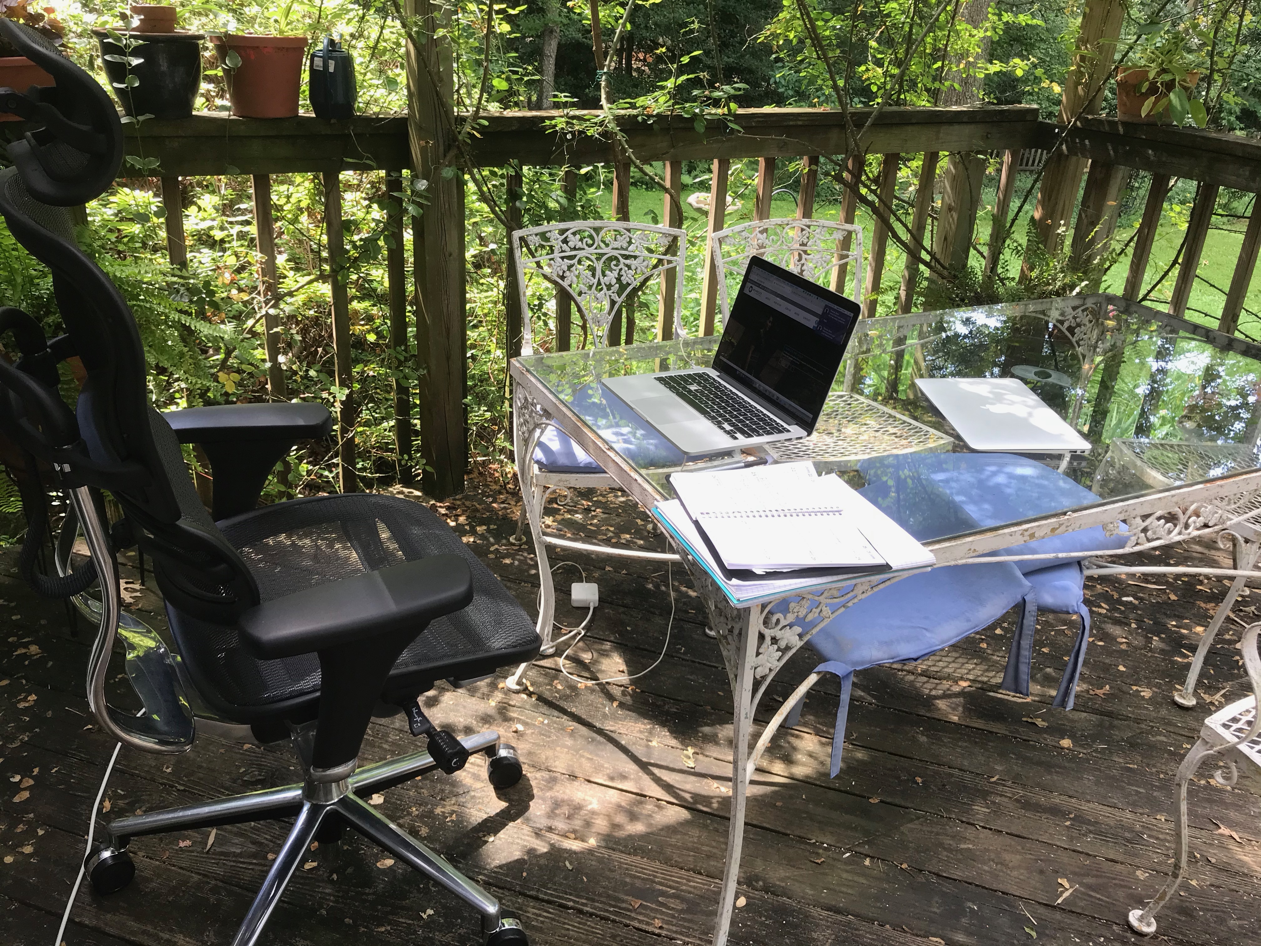 In the way that white noise makes one concentrate, the sights and sounds of the outdoors do the same for me. And to concentrate while also seated in comfort is … divine.
